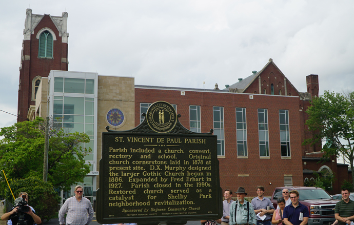 A Kentucky Historical Highway Marker was unveiled Aug. 1 at the former St. Vincent de Paul Church, which is now Sojourn Community Church, on South Shelby Street. One side of the marker briefly describes the history of the church, which was founded in 1878 and served primarily German Catholics.