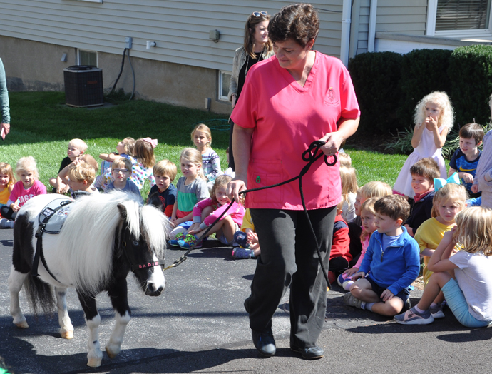 Sheri Badgett walked Sadie, a miniature therapy horse, at Holy Trinity School Sept. 28. (Record Photo by Jessica Able)